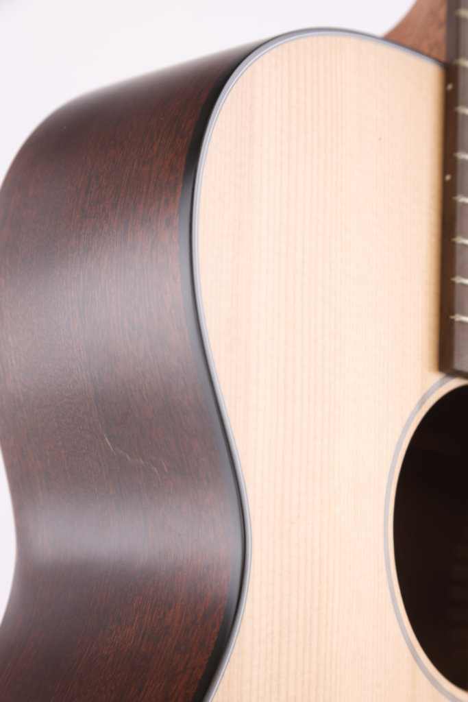 Na uwagę zasługuje konstrukcja z litego drewna. Świerkowy top w satynowym wykończeniu dodaje tonom jasności i przestrzeni, podczas gdy tył i boki z sapele zapewniają ciepłe, “drewniane” brzmienie z wyraźnym środkiem. To perfekcyjny wybór dla muzyków, którzy cenią sobie elastyczność – od delikatnego fingerpickingu po mocne akordowe uderzenia.