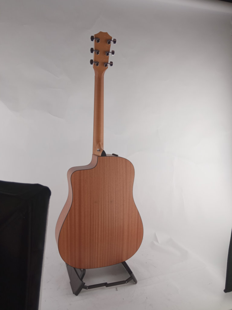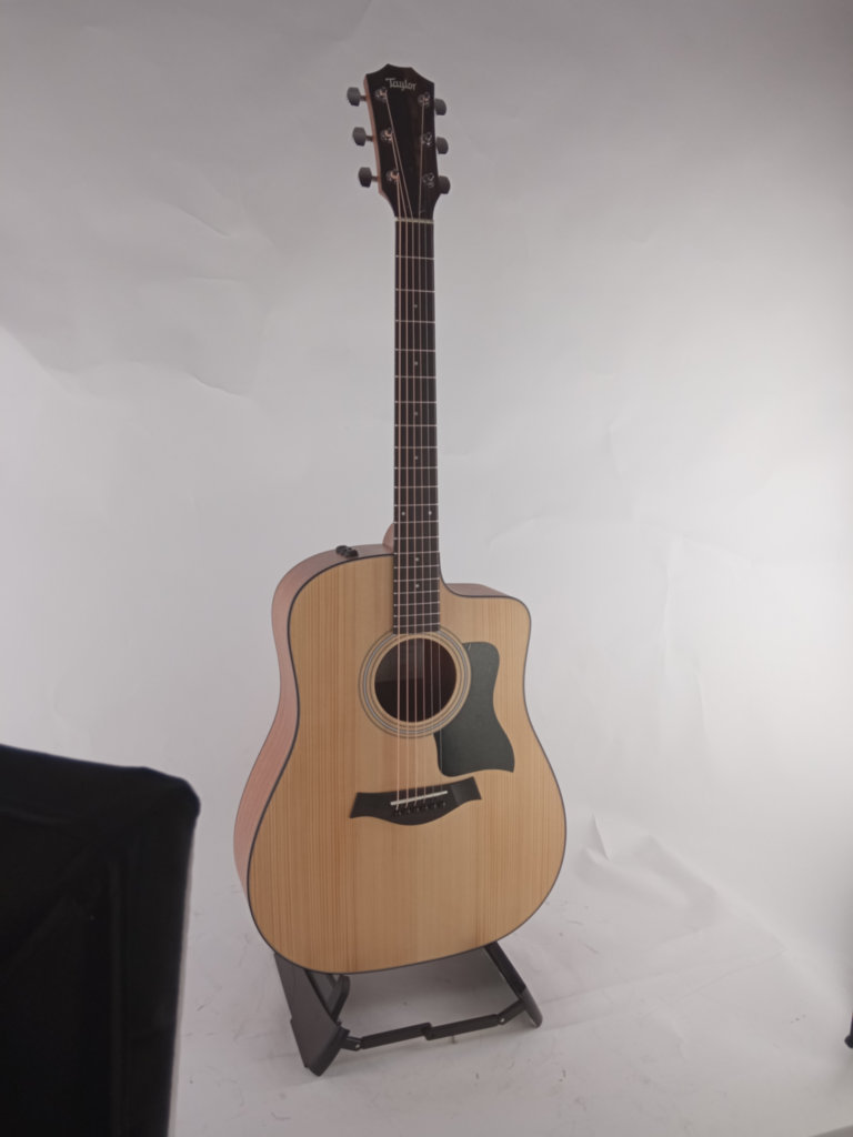 Gitara Taylor 110ce to klasyczny model akustyczno-elektryczny typu Dreadnought, który oferuje mocne, bogate brzmienie idealne dla gitarzystów o różnych stylach i poziomach zaawansowania. Posiada solidny top ze świerku, który zapewnia pełną projekcję i klarowność dźwięku. Tył i boki wykonane są z warstwowego sapele, co czyni gitarę bardziej trwałą i przystępną cenowo.